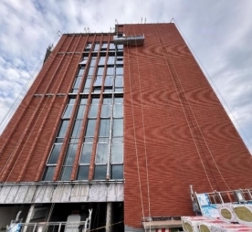 直立跌级锁边陶砖幕墙通过空腔构造减少陶砖材料用量25%,提升保温性能,累计减碳超800吨。