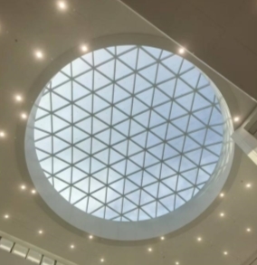 与传统铝板吊顶相比,玻璃采光顶能自然采光以节约能源,并赋予建筑独特的艺术美感。特别是,球冠形采光顶以其优美的对称曲线和最大的采光效率,深受设计师青睐。