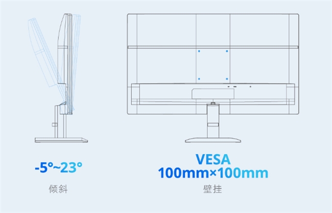 24E40L/27E40L圆偏光护眼商用显示器还支持-5°~23°俯仰调节,并采用人性化快拆支架设计,无需工具轻松安装拆卸,充分满足支架安装、壁挂安装等多种安装形式,使办公更灵活自如,实现减负提效!