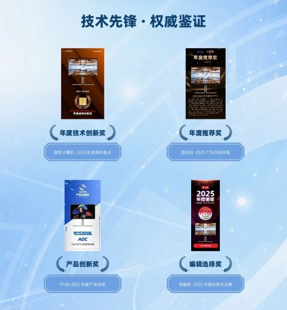 2025年,AOC坚持以“创新”为核心驱动力,凭借卓越的产品力在各大权威评选中大放异彩。从定义专业水准的AOC创作设计旗舰显示器K27U3,到融合护眼科技的AOC爱瞳圆偏光电竞显示器Q27G4SL/WS,再到开拓前沿赛道的AOC小Q MAX阅读器8R1与AOC智能办公本10W2,全线产品皆凭实力赢得权威加冕。这些奖项不仅是对AOC技术边界探索与突破的褒奖,更肯定了AOC在推动行业显示技术迭代、树立前沿显示标准方面所做出的卓越贡献。
